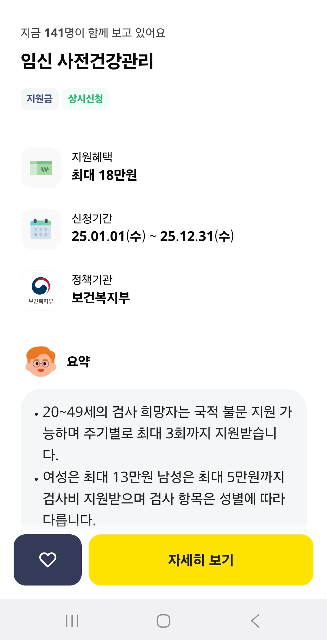 오! 이건 제가 관심 있게 봤던 건데 임신사전건강관리도 알려주네요~