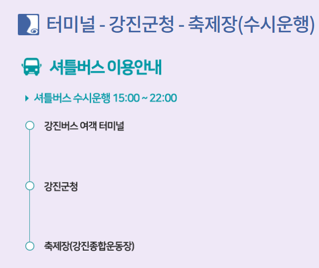 셔틀버스가 수시로 운행되니 뚜벅이로 강진 갔어도 하맥축제 충분히 즐길 수 있다는 거!